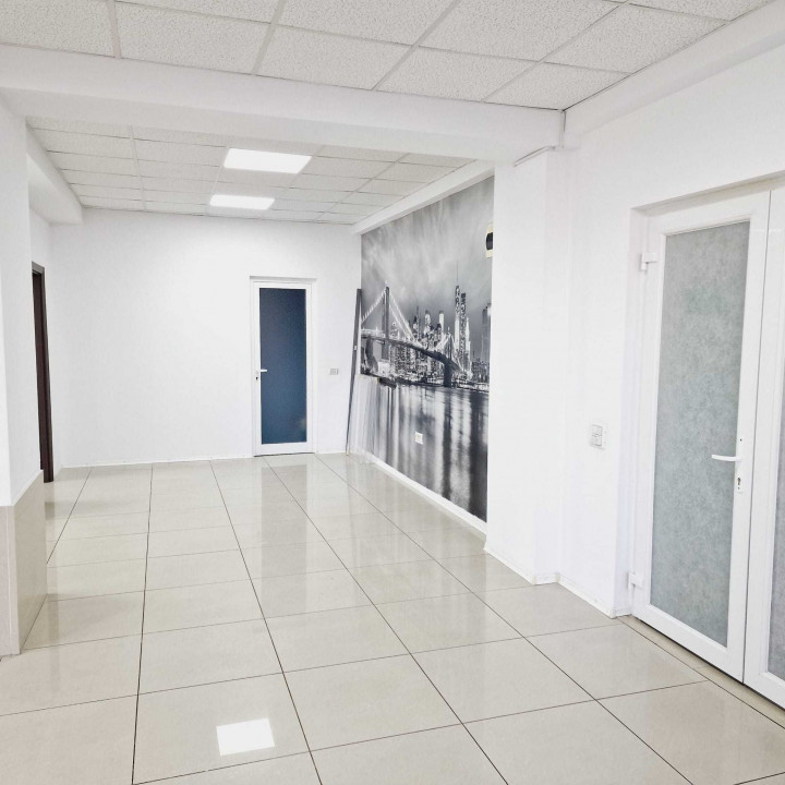 Spatiul dispune de o suprafata de 80 mp. compartimentata in 2 birouri, grup sanitar si oficiu (chicineta). Toate utilitatile sunt contorizate separat ( aoa, curent, gaze) si exista posibilitatea de inchiriere in varianta (semi)nemobilat.