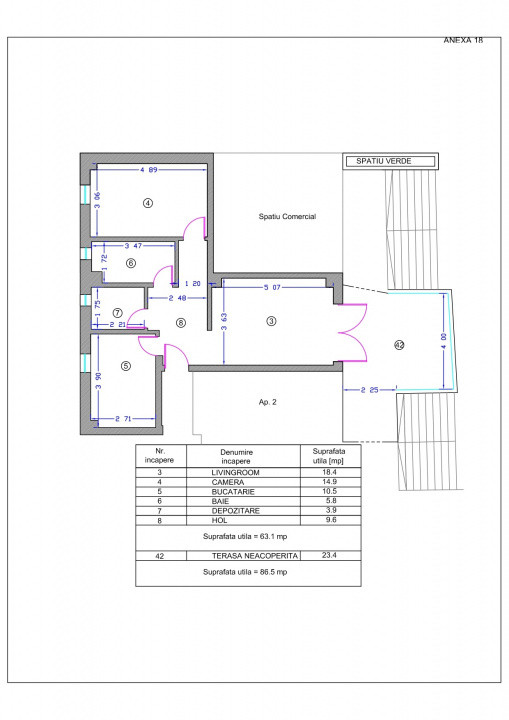 - terasă generoasă – 21 mp., cu acces direct din stradă ;