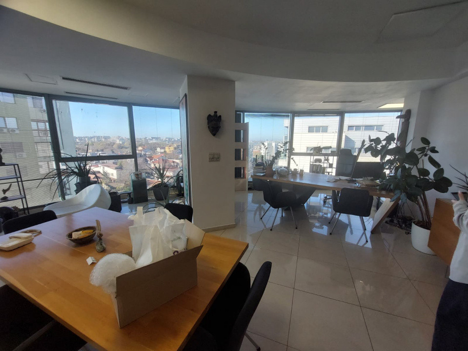 Va propunem spre inchiriere un spatiu comercial modern, situat la etajul 6 al unei cladiri de birouri reprezentative. Spatiul are o suprafata utila de 420 mp si beneficiaza de o compartimentare flexibila, in prezent organizata in 11 birouri individuale, 2 bai si o chicineta.