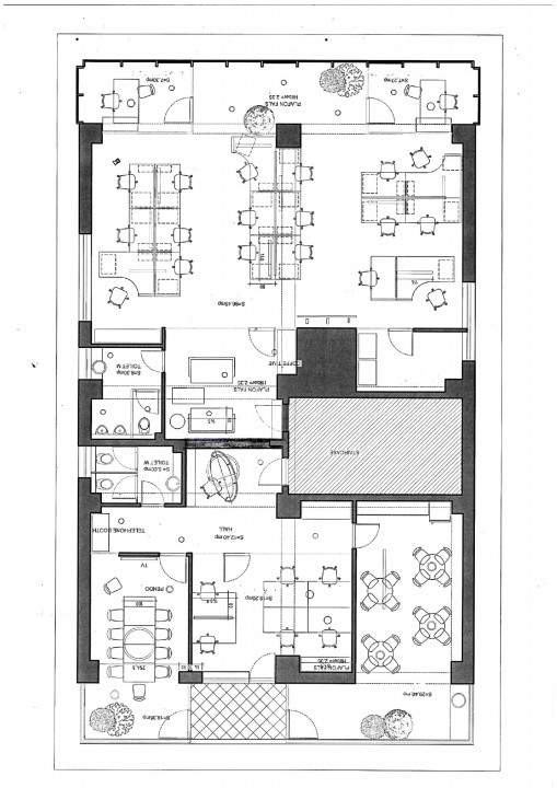 Suprafata generoasă de 215 mp . est compartimentata cu sticla in multiple spatii functionale (birouri , birouri directoriale, sală de ședințe, spațiu dedicat întâlnirilor formale sau prezentărilor, chicinetă complet utilată și spațiu pentru servit masa/relaxare angajați) constituie mediul ideal desfasurarii activitatii unui business profesionist.
