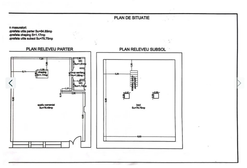 Dispune de o suprafata totala de 165 mp., distribuita astfel : parter 85 mp., open space si 2 grupuri sanitare si demisol 80 mp. Spatiul este dotat cu toate utilitatile , inclusiv incalzire centrala gaze.
