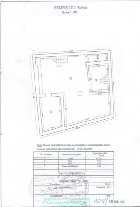 Suprafata de aprox. 211 mp . este splitata pe 2 nivele (121 mp. parterul si 90 mp. subsolul) .Beneficiaza de toate utilitatile si dotarile necesare: centrala termica proprie pe fiecare etaj, aer conditionat, grup sanitar separat pe fiecare etaj, etc. Subsolul are si intrare separata. Spatiu se preteaza perfect activitatii de alimentatie publica, de altfel, au fost facute si modificari structurale pentru acesta activitate,